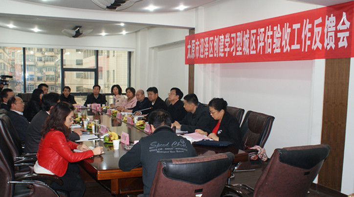 2012年11月20日至22日,根据太原市委、市政府《关于创建学习型城市的实施意见》([2008]18号)文件精神,按照市创建学习型城市领导组办公室《关于2012年全市创建学习型县(市、区)、街道(乡镇)、社区(村)评估验收工作的通知》安排,创建学习型城区评估验收组一行11人对迎泽区创建学习型城区工作情况进行了为期3天的认真评估。