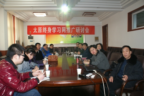 2011年12月20日上午,太原终身学习网推广研讨会在我校一楼会议室召开,时耐敏院长出席了会议。太原社区学院技术中心、社教办、研究中心工作人员,杏花岭区成教科、社区学院工作人员,迎泽区成教科、小店区社区学院工作人员参加了会议。会议主要围绕太原终身学习网向县(市、区)推广展开。