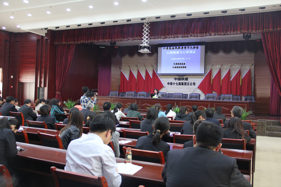 此次讲座特邀请了山西省青年职业学院的王洁教授。王洁教授针对当今社会竞争激烈,导致人们心理出现各种不健康的状况,着重从心理状态的表现、解读心理、人的心理结构、心理健康调试四个方面进行了解读,深入浅出的讲解让每一位聆听者受益匪浅。大家通过这次讲座充分认识到:心理健康比身体健康更重要。