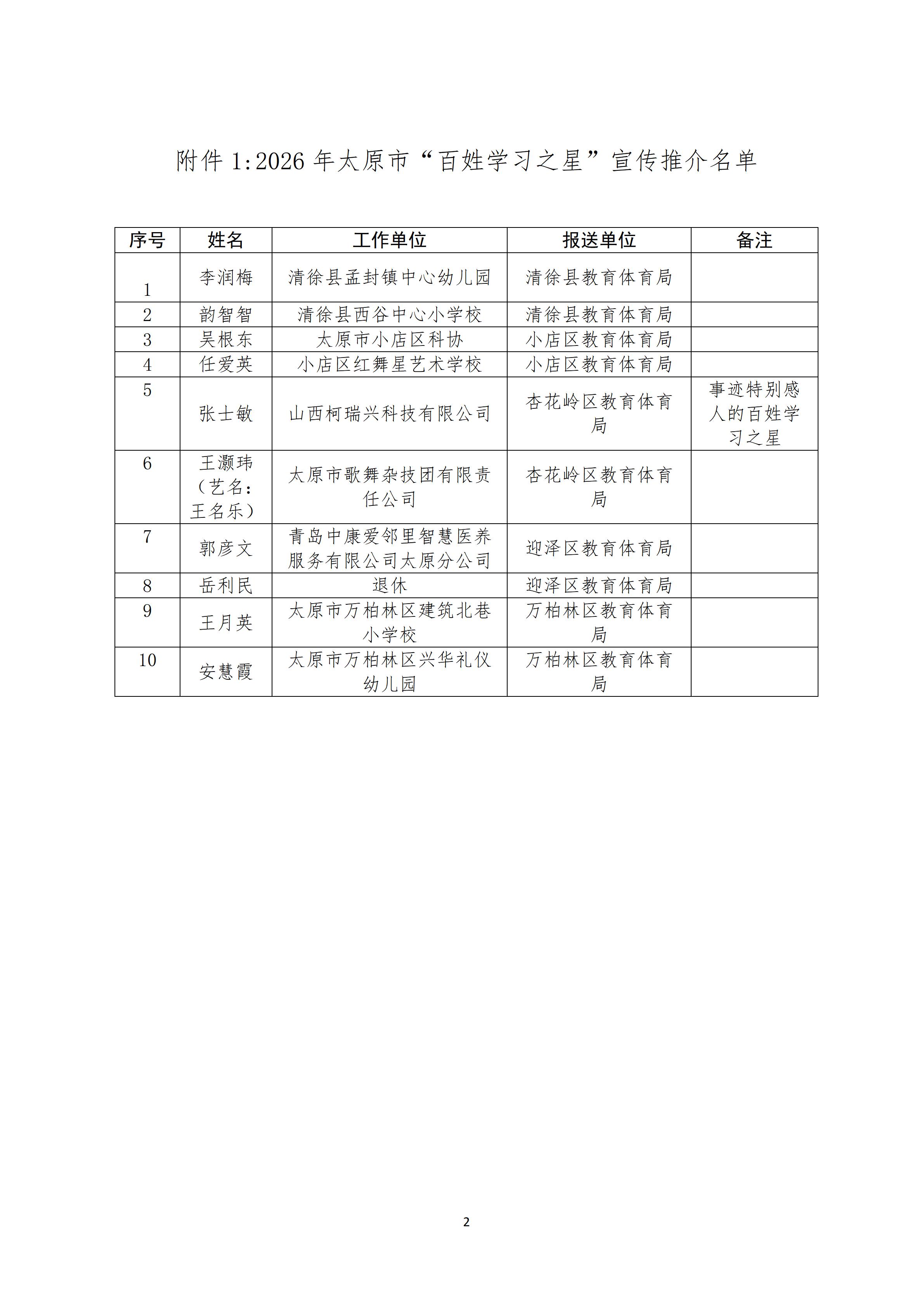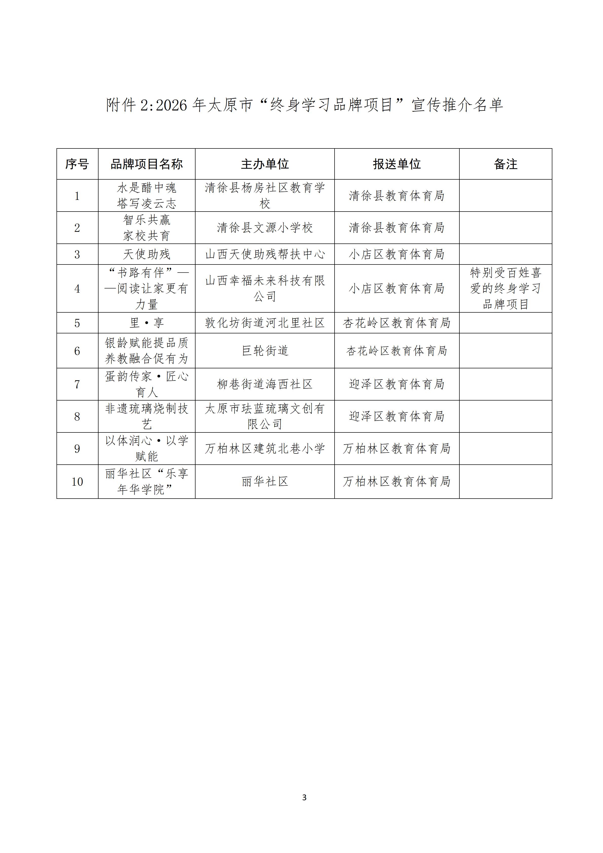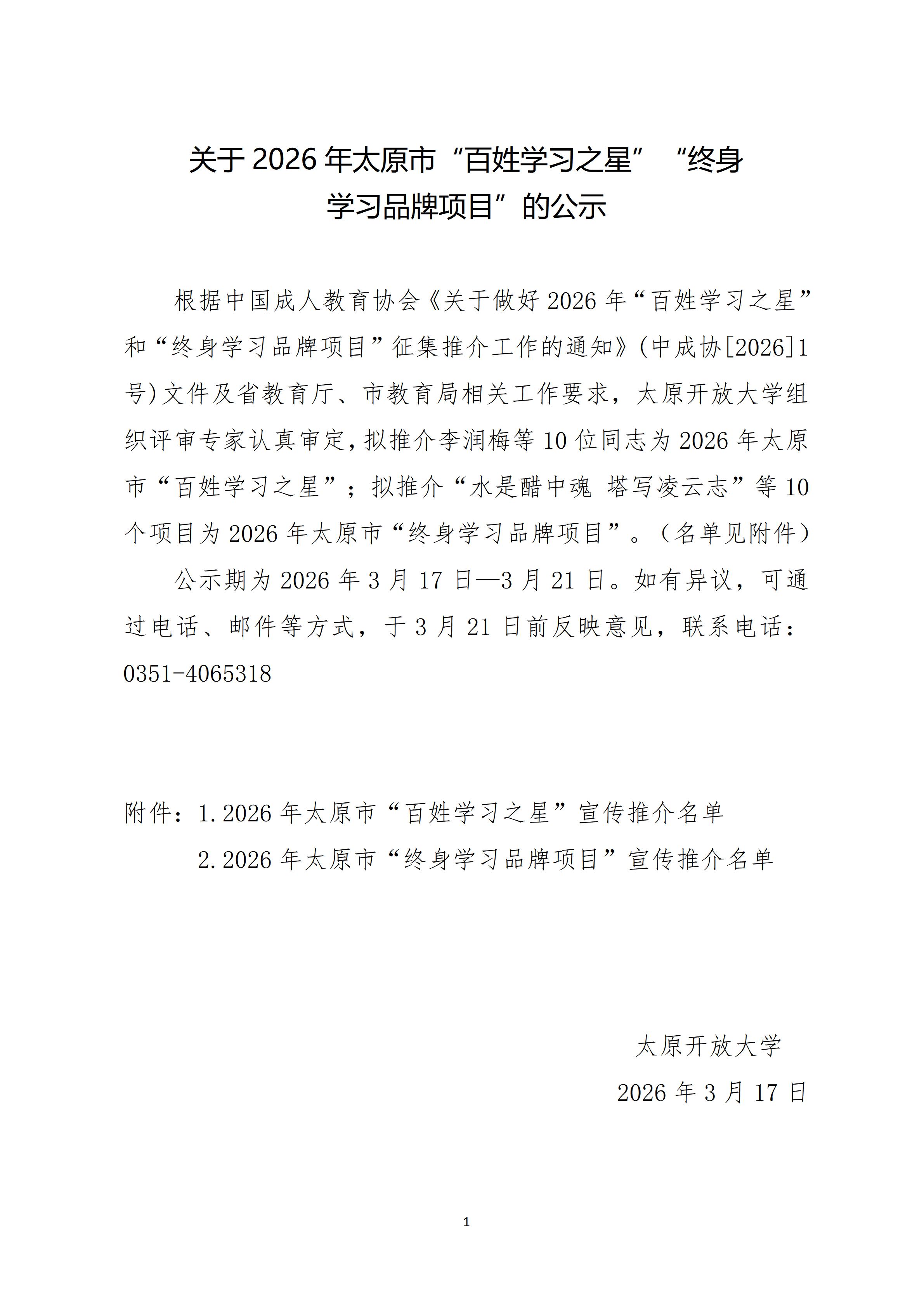 关于2026年太原市“百姓学习之星”“终身 学习品牌项目”的公示