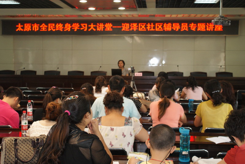 讲座主讲人为山西大学继续教育学院、我市优秀社区志愿者桑宁霞教授,会议由迎泽区教育局成教科副科长胡海燕主持,太原市迎泽区社区教育辅导员近五十人参与了本次讲座。