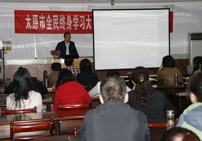 讲座主讲人为我市大同证券研究员王晓,会议由太原社区学院办公室主任武晨主持,太原社区学院全体教职工及社区部分居民前来听讲。