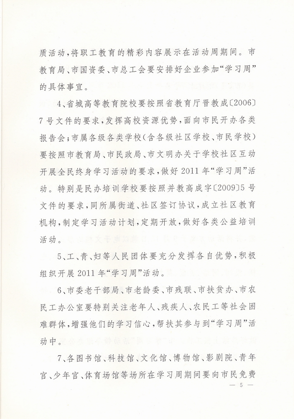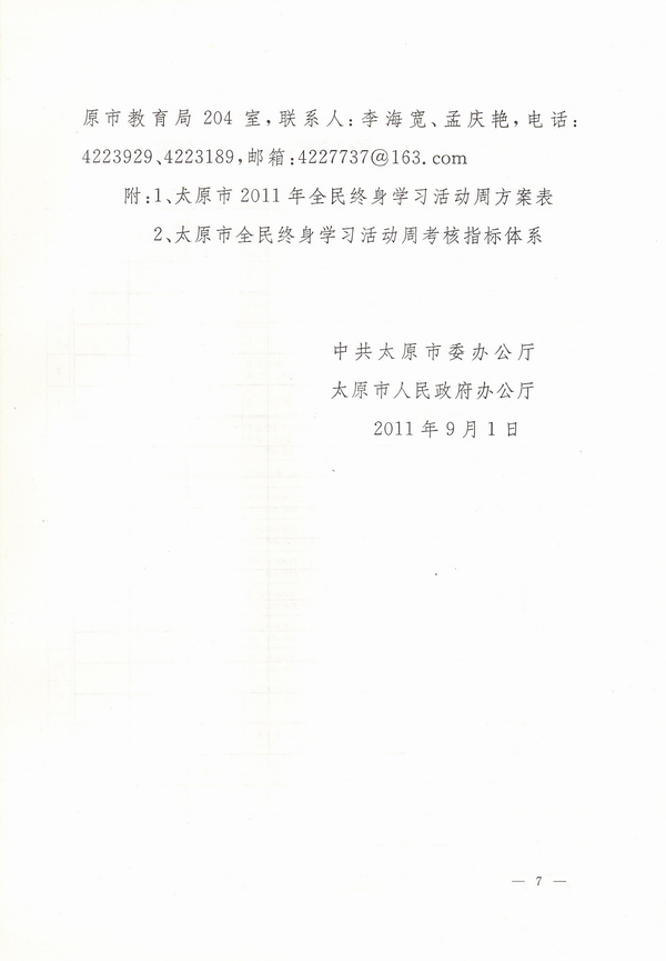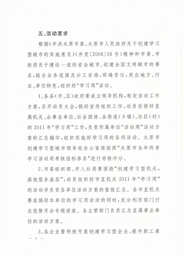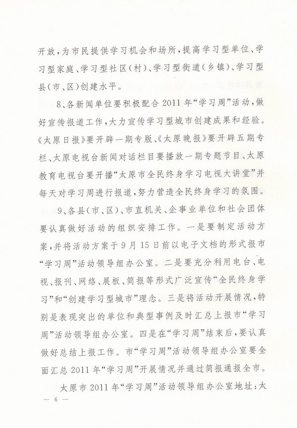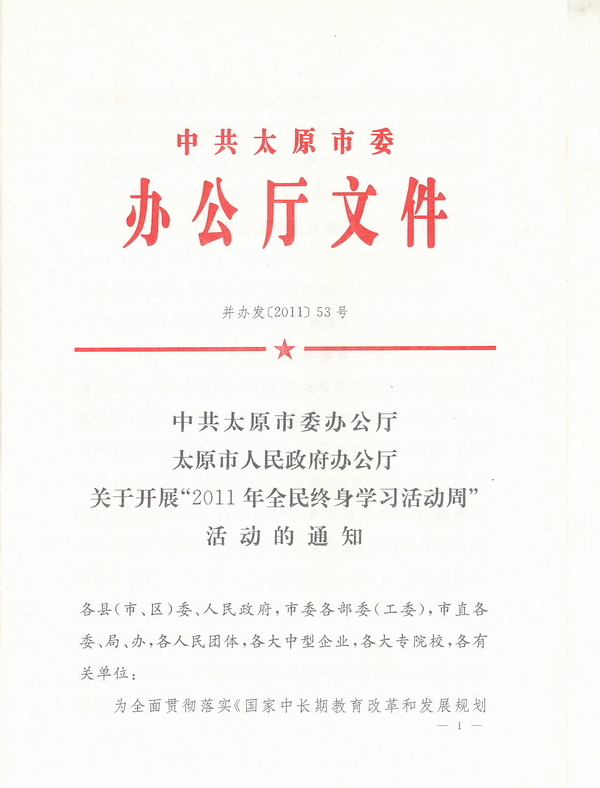 中共太原市委 太原市人民政府关于开展“2011年全民终身学习活动周”活动的通知