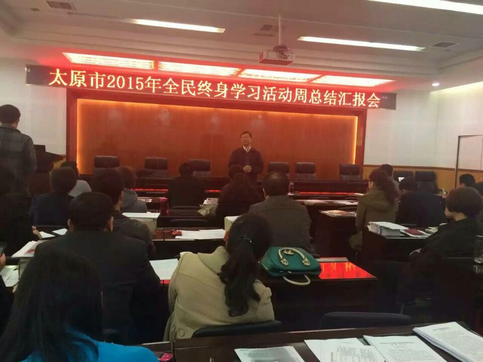2015年11月17日,太原市2015年全民终身学习活动周总结汇报会在教育局一楼会议室召开。会上,十个县(市、区)教育局局长或分管副局长采用视频或PPT的形式对2015年学习周工作做了汇报。马兆兴局长出席会议听取了汇报并做了重要讲话。