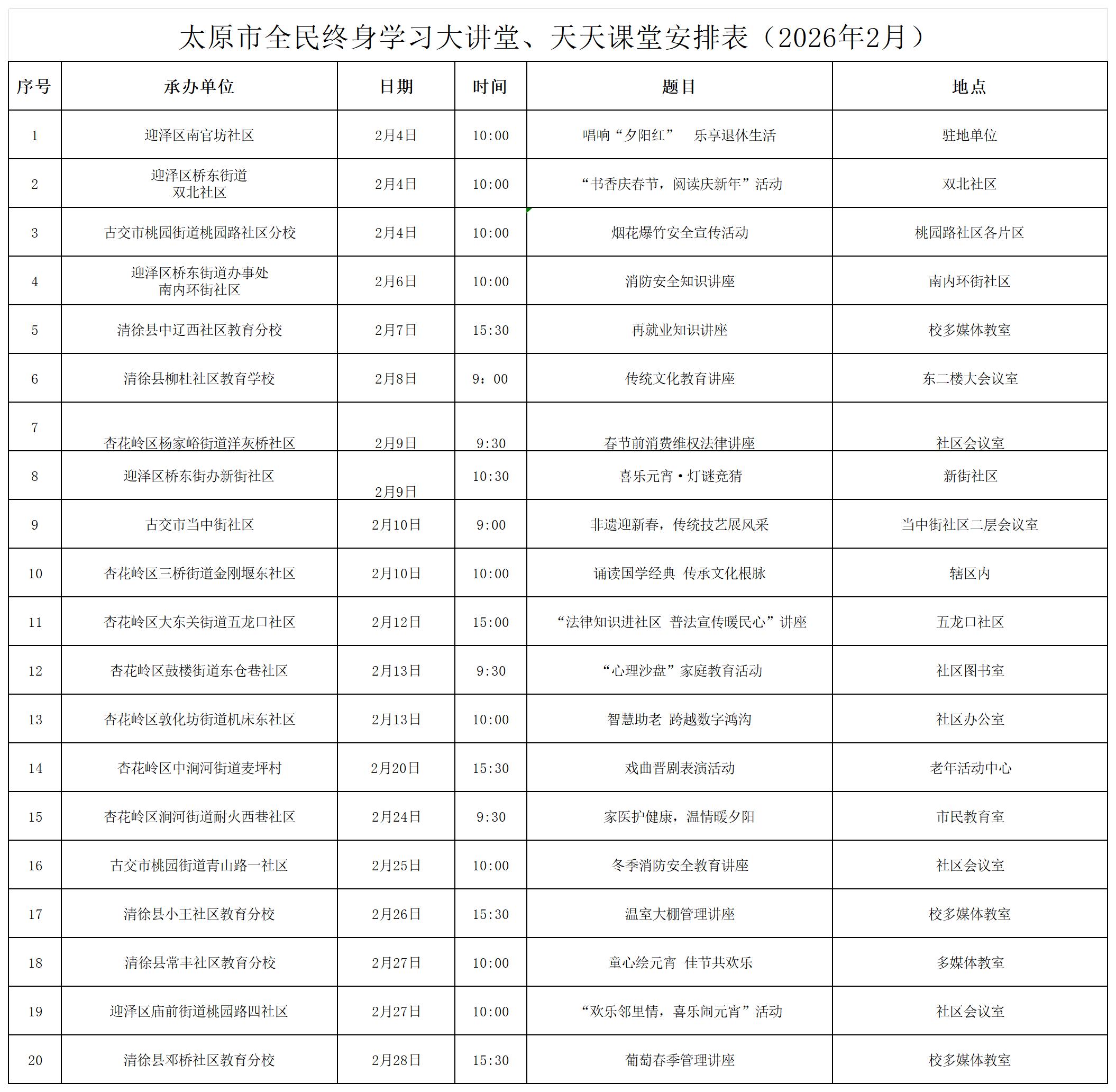 首页/ 图片新闻/ 太原市全民终身学习大讲堂、天天课堂安排表(2026年2月)